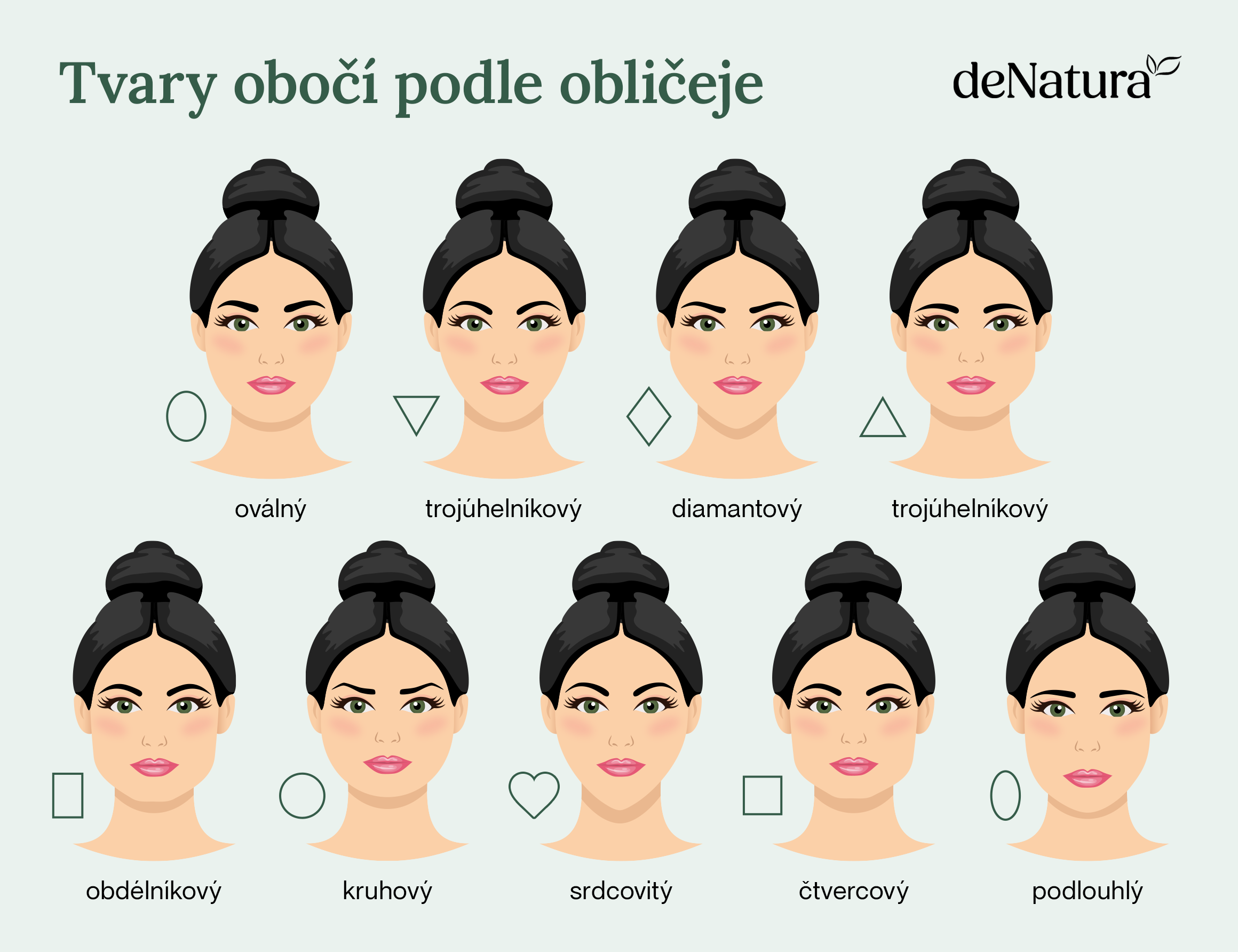 A přitom to není vůbec složité. Nejlépe na vašem obličeji totiž vypadá přirozený tvar obočí, který nijak výrazně neměníte. Pokud ale chcete tvar obočí přesto alespoň trochu upravit, připravili jsme jednoduchého průvodce, který vám pomůže najít ten správný tvar obočí pro váš obličej.