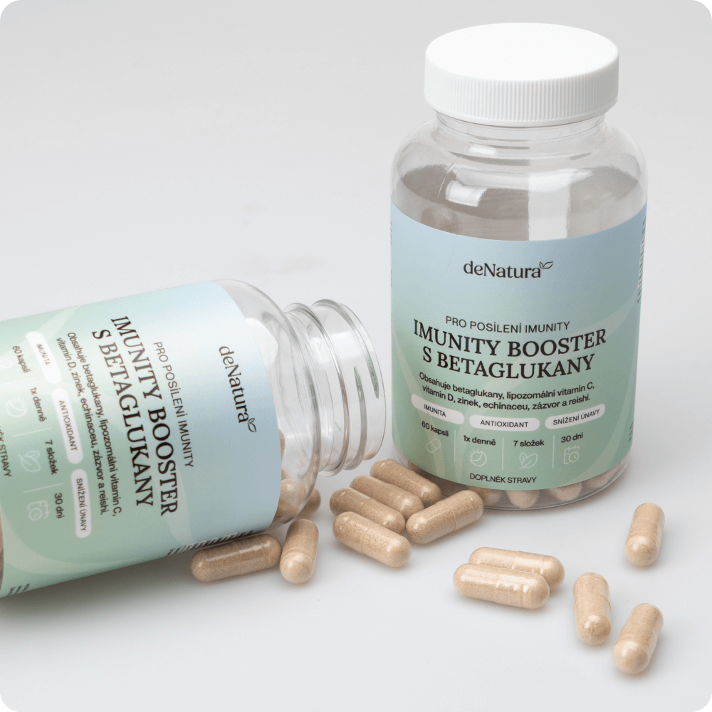 Imunity booster je komplexní doplněk stravy pro krátkodobou i dlouhodobou podporu obranyschopnosti. Obsahuje účinnou dávku betaglukanů z kvasinek, jejichž účinky na imunitu potvrzují klinické studie. Tyto přírodní imunomodulátory aktivují imunitní buňky a pomáhají snížit četnost a délku respiračních infekcí. Účinek doplňují extrakty z echinacey, zázvoru a reishi, které podporují odolnost při stresu i fyzické zátěži.