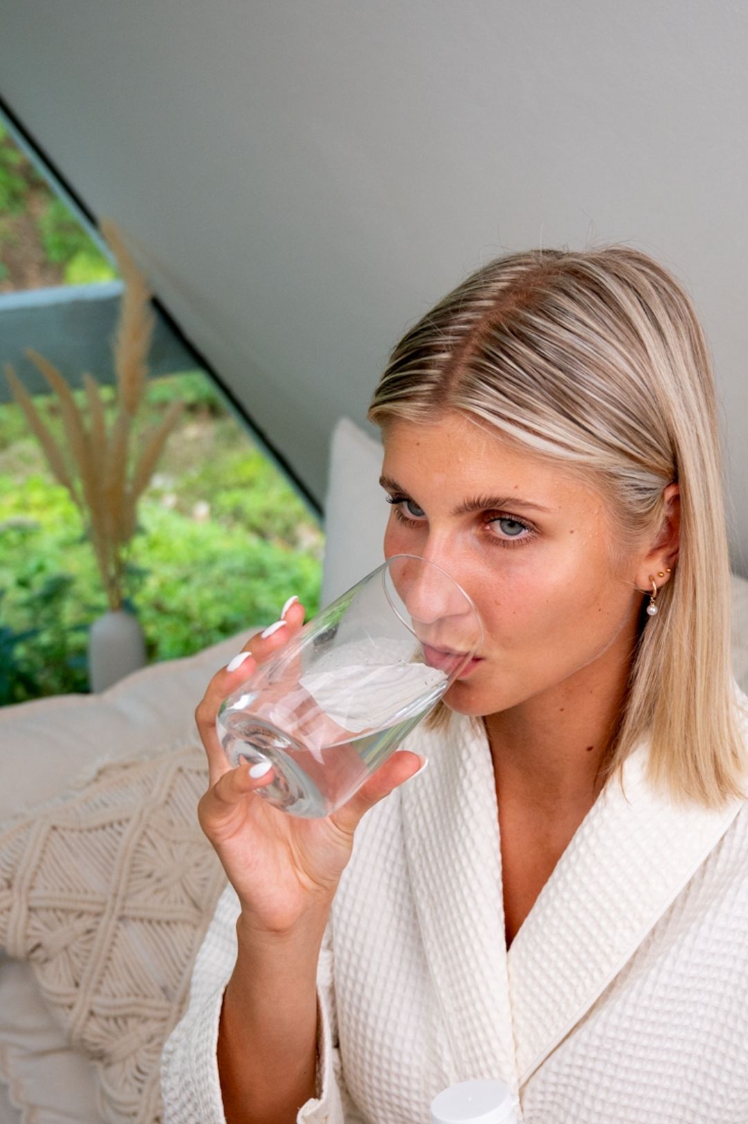 Obecně platí, že je vhodné vypít zhruba 30–40 ml vody na kilogram tělesné váhy denně. Skvěle poslouží čistá voda, bylinkové čaje nebo voda s plátkem citronu.