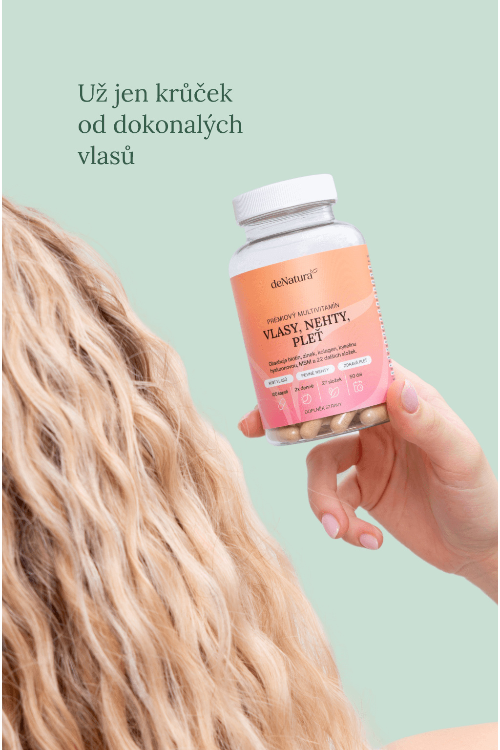 Bez umělých barvivPrémiový vitaminový komplex deNatura pro zdravé a krásné vlasy, pevné nehty a zářivě vypadající pleť. Obsahuje 27 účinných látek v bioaktivní formě pro maximální vstřebatelnost. Unikátní kombinace látek se postará nejen o váš krásný vzhled, ale také podpoří zdraví hormonálního systému a fungování celého těla. Balení obsahuje 100 kapslí, což odpovídá 50denní kúře při pravidelném užívání. Produkt je vhodný i pro alergiky – s výjimkou těch, kteří mají negativní reakci na ryby, protože obsahuje rybí kolagen.