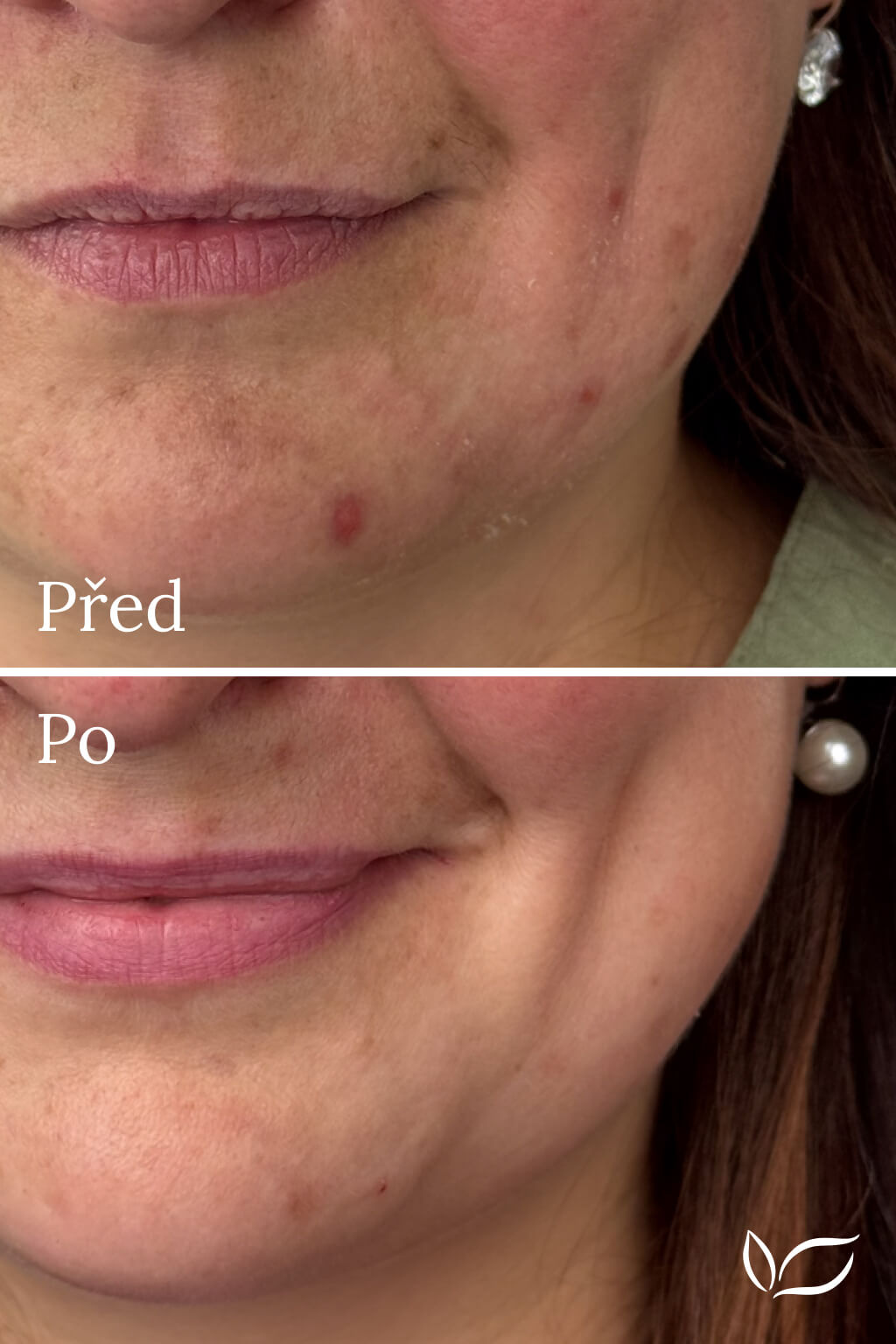 Pupínky, černé i bílé tečky jsou výrazně redukovány. Pleť je sjednocená, vyhlazená a stopy po akné méně patrné. Pokožka působí zdravě, jasně a vyrovnaně.