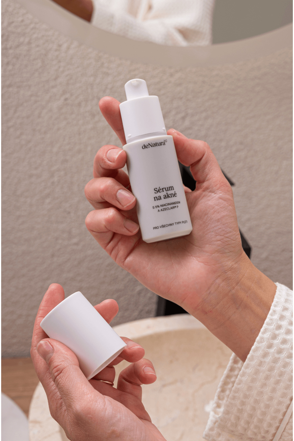 Naše sérum na akné je vhodné jak pro mladou pleť se sklonem k pupínkům, tak i pro zralou pleť. U mladé pleti pomáhá regulovat nadbytečný maz a předcházet vzniku nových nedokonalostí, zatímco u zralé pleti kromě redukce akné zároveň sjednocuje tón, vyhlazuje pigmentové skvrny po akné a podporuje hydrataci, pevnost a jemnější texturu pleti.